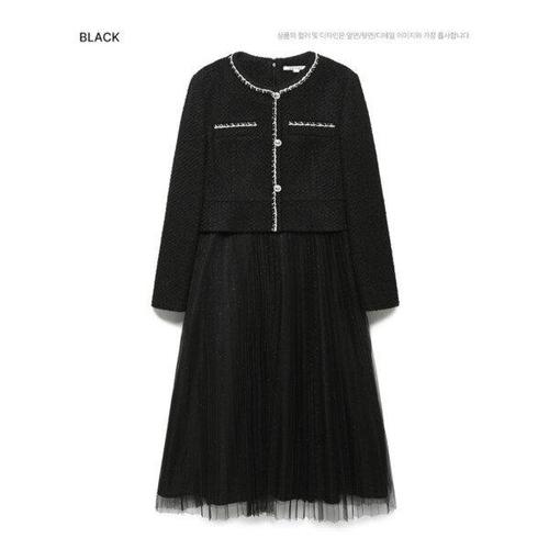 [나이스클랍][나이스클랍]트위드 배색 샤스커트 원피스(A244PWOA01)BK_DG