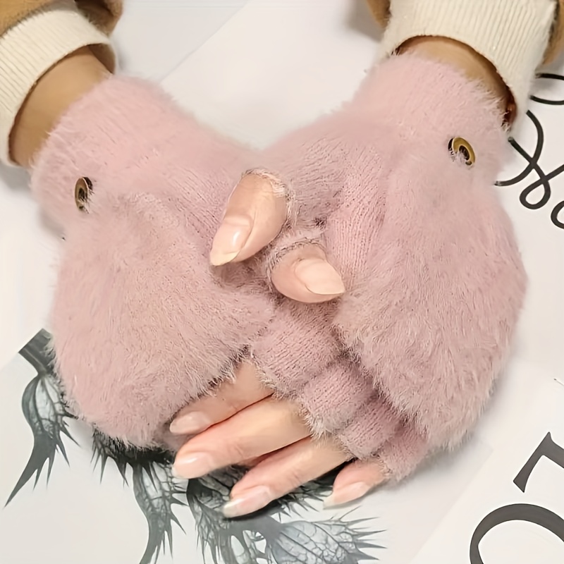 TEMU 여성용 겨울 따뜻한 롱 플러시 장갑, 1쌍, 핑거리스 플립 장갑, 두꺼운 스트레치 폴리에스터, 야외용, 세탁기 및 드라이클리닝 가능, 가을 겨울 따뜻한 플러시 장갑, 5가지 색상 학생용 플립 장갑, 필기 및 타이핑에 적합, 두꺼운 방한 장갑, 야외용, 남녀공용, 할로윈 코스튬