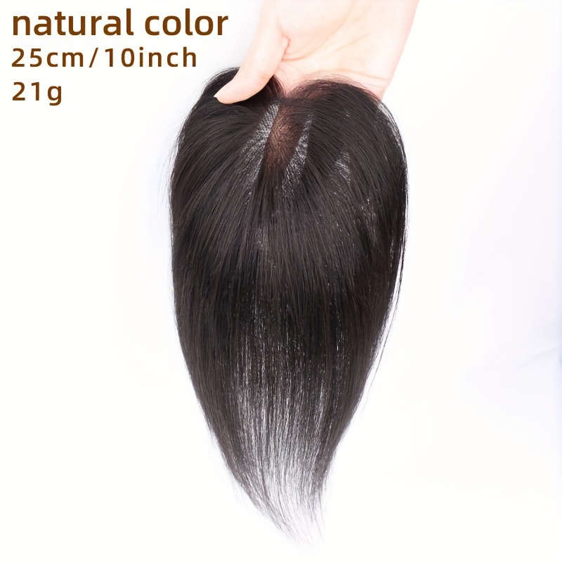 TEMU 여성용 수제 인모 가발 조각 | 상단 헤어 두꺼움, 볼륨, 흰머리 커버, 매끄러운 연출