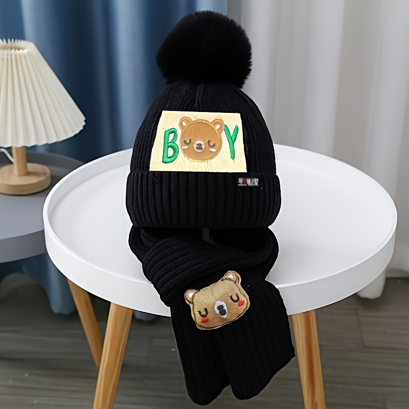TEMU 1개 아늑한 모자 & 스카프 세트 - 두꺼운 따뜻한 겨울 모자와 귀여운 곰 디자인, 가벼우며 손세탁 가능, 야외 활동 및 휴일 착용에 완벽함, 편안한 겨울 의상, 겨울 액세서리 | 장난기 있는 디자인 | 부드러운 질감, 겨울 모자, 소녀 모자 스카프 세트, 모자 스카프 세트, 스카프 모자 세트