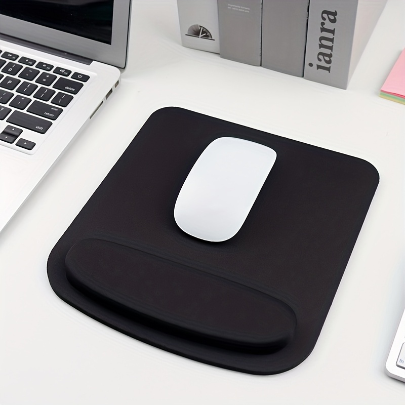 TEMU 대형 인체공학 EVA 마우스패드 - 손목 받침대, 미끄럼 방지 베이스, 곡선형 손목 지지대, 블랙 컴퓨터 데스크 매트 (사무실, 게이밍, PC, 노트북용) - 편안한 두꺼운 대형 마우스패드