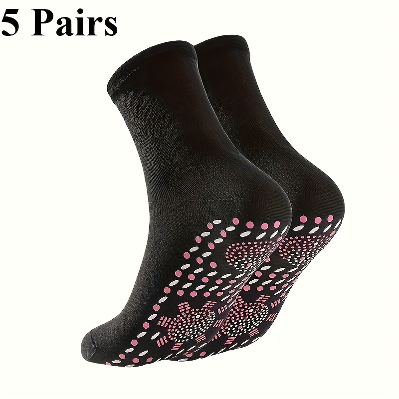 TEMU 5켤레 겨울용 자석 양말 - 보온 발 워머, 패브릭, 단색, 세탁기 사용 가능, 추운 날씨의 야외 스포츠 & 하이킹에 적합, 발렌타인데이, 추수감사절, 할로윈, 엉덩이 날, 겨울 스포츠 장비 | 단색 양말 | 구조, 겨울 양말