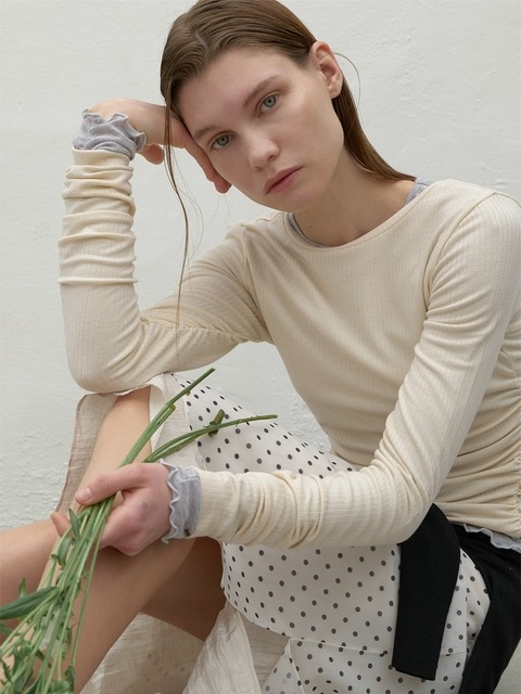 [아틀리에 나인] 골지 셔링 백 포인트 슬림 티(T-6770)