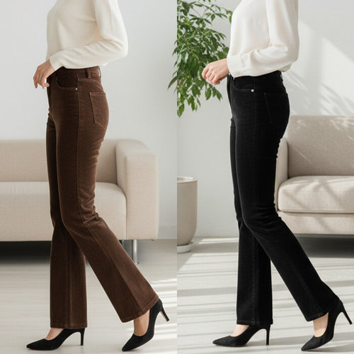 [에이치플러스몰]여자 기모 부츠컷팬츠 하이웨이스트 나팔바지 겨울바지