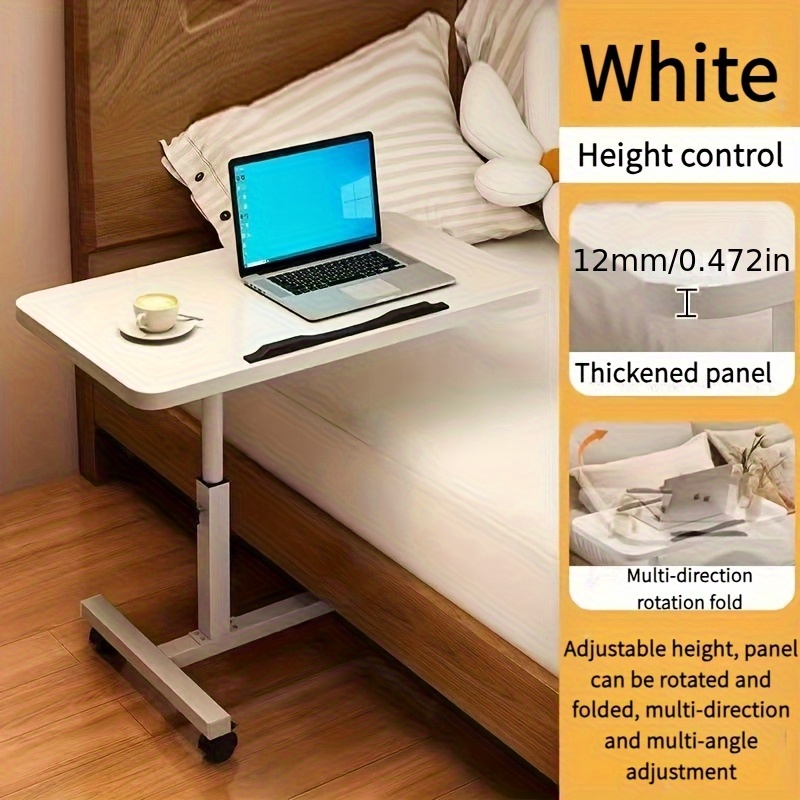TEMU 높이 조절 & 회전식 수납 테이블 (4륜 이동 가능) - 튼튼한 메탈 프레임, 공간 절약형 모던 화이트 & 블랙 디자인