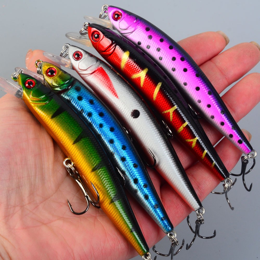 TEMU 5개입 미노우 루어 | LINGYUE 바이오닉 플로팅 베이트, 배스 및 퍼치 낚시용, 혼합 색상 ABS 소재, 바닷물 및 민물에 적합