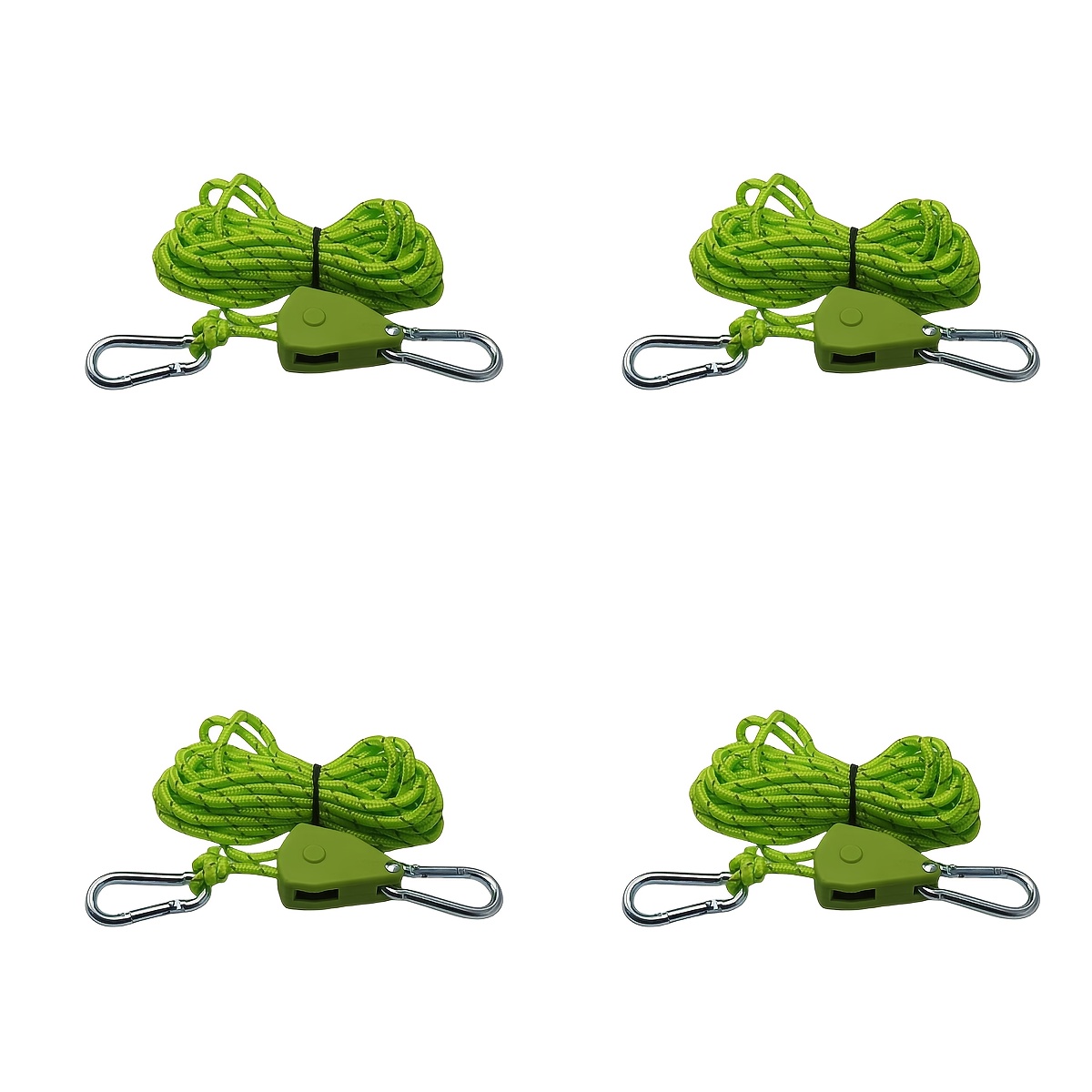 TEMU 4개 반사성 방풍 로프, 풀리 디자인, 4mm 직경, 157, 48ft 길이, 내구성 있는 금속 라쳇 패스트너 캠핑 텐트 및 천막 설정, 밤에 쉽게 식별, 빠른 고정 및 조정, 캠핑용 로프, 텐트 안정성, 생동감 있는 로프 색상, 튼튼한 로프 구조