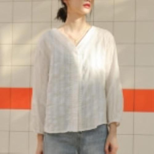 [옷자락]여자 가을 브이넥 펀칭 세로줄 긴팔 루즈핏 데일리 블라우스