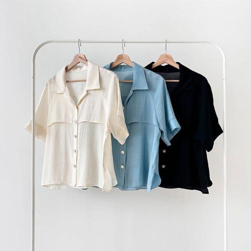[옷자락]여자 루즈핏 날개프릴 라카넥 반팔 블라우스