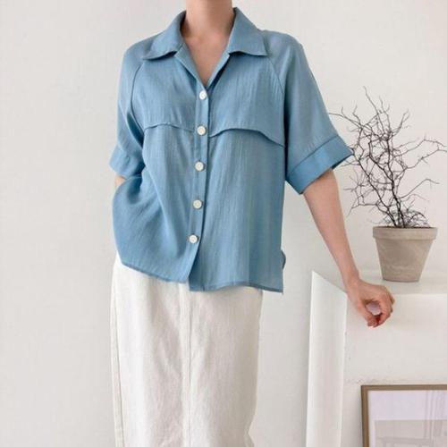 [옷자락]여자 라카넥 날개프릴 반팔 블라우스