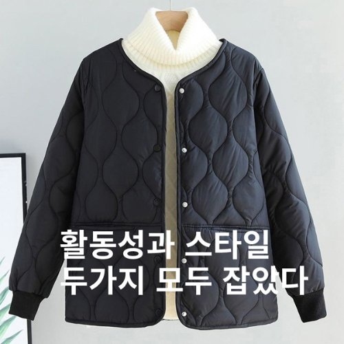 2025년 봄 신상 여성 빈티지 크루넥 퀼팅 코튼 패딩 루즈핏 퀼팅 캐주얼 재킷
