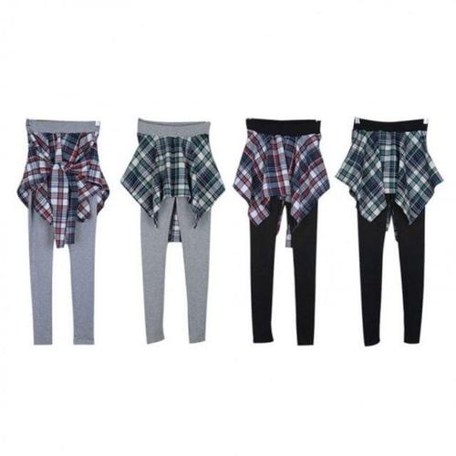 더플로우커머스 여성용 셔츠 레이어드 디자인 체크 미니 스커트 팬츠
