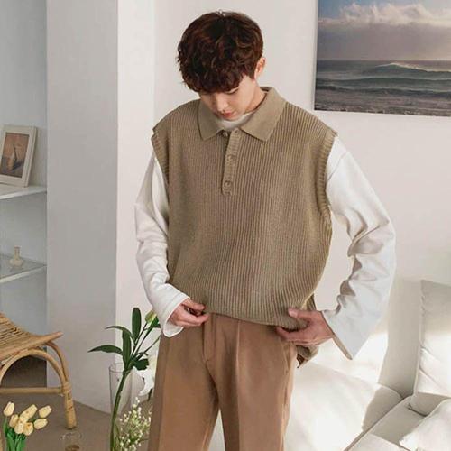 [셀럽하우스]촘촘 NWOT8358 탄탄 짜임 톤다운 컬러감 카라 남자 니트 조끼
