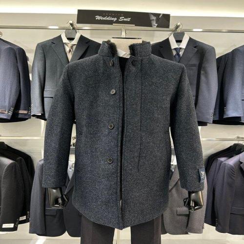 세르지오등 남성 따뜻한 캐시미어 헤링본 더블 하프코트 구스다운 정장자켓 콤비자켓