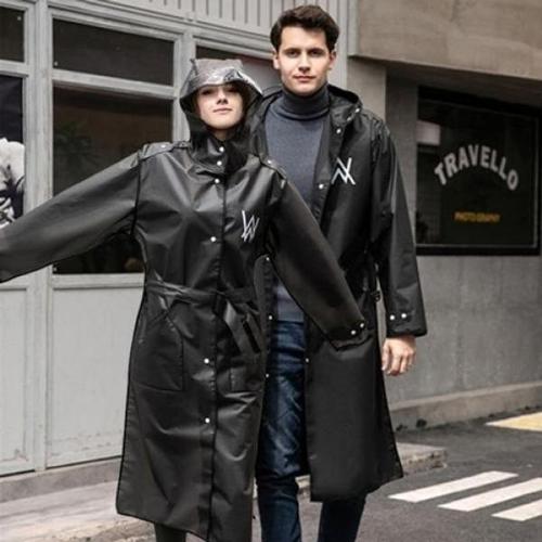 패션 블랙 성인용 윈드브레이커 스타일 방수 롱 레인코트 여성 남성 후드형 야외 오토바이, 자전거, 하이킹, 낚시용