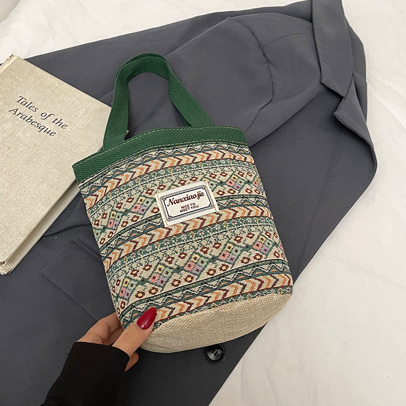 TEMU 1개 수제 핸드백 | 새로운 스타일 런치 바스켓 토트백, 사무직 근로자를 위한 캔버스 런치 백, 그린, 손세탁만 가능