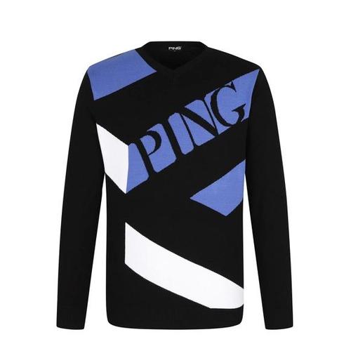 [핑]남성 로고 브이넥 긴팔 니트 111E1SR103_BK
