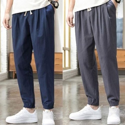 [셀러허브_여성트랜드패션]조거 아웃도어 남성 캐주얼바지 밴딩린넨 레저팬츠 여름 팬츠 바지 9부
