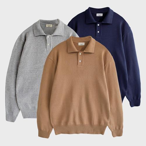 [화이트빌딩]남성 부드러운 캐시라이크 니트 긴팔 카라티셔츠