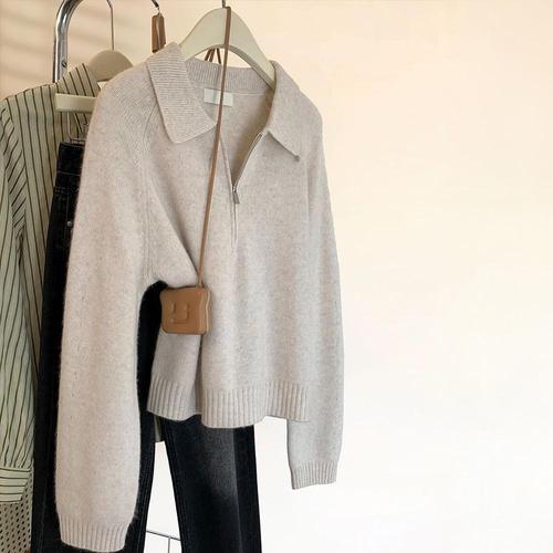 [모어오브]올댓 아노락 니트 카라 반집업 긴팔 탑