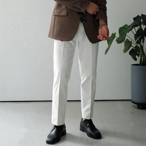 [맨즈북]축률방지 워싱 남자흰색면바지 비침없는 화이트 슬랙스 치노팬츠