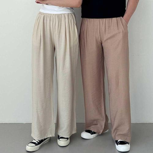 커플룩 남녀공용 시원한 여름 린넨룩 밴딩 와이드팬츠 WFK5UCL