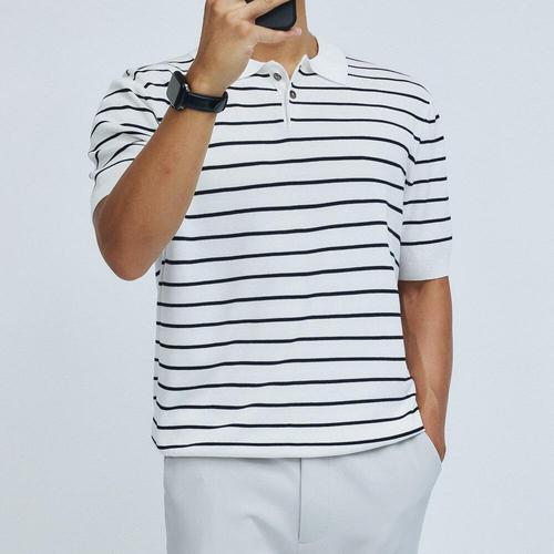 [피팅남]남자 임제 오버핏 여름 스트라이프 반팔 카라 니트