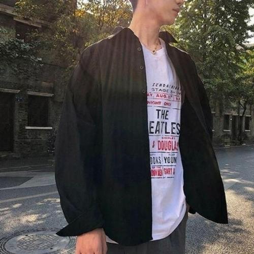 [에이치플러스몰]긴팔티코디 봄 남성 무지티 오버핏 남성티 무지 20대