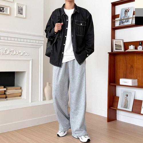 [기타브랜드]메트리 남녀공용 무지면 와이드 기모 통바지