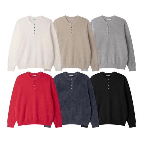 남자 앙고라 헨리넥 버튼 라운드 긴팔 니트 AS-KN-Q022-차콜