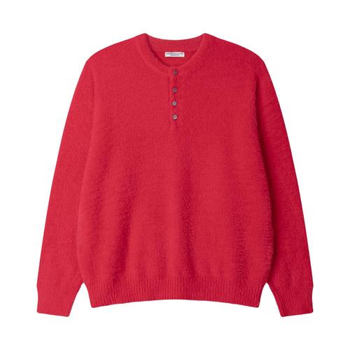 남자 앙고라 헨리넥 버튼 라운드 긴팔 니트 AS-KN-Q022-레드