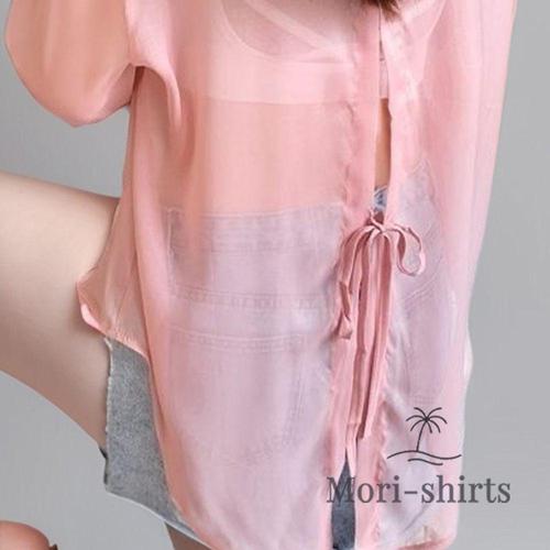 모리셔츠 뒤트임 시스루 핑크셔츠 긴팔 여름남방 비치 WFHXK6B