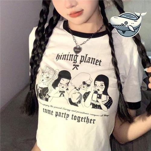 [오노마] ONM 여름 캐릭터 프린팅 슬림핏 크롭티 귀여운 배색