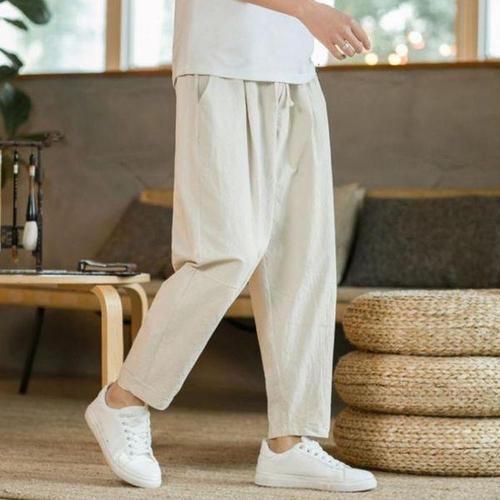 [에이치플러스몰]남자 꾸안꾸룩 린넨 소재 허리밴딩 9부바지 여름팬츠