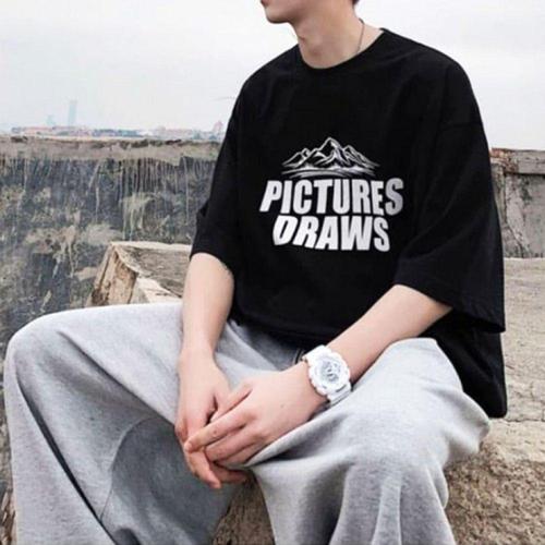 남성 여름용 면 반팔티 프린트 박스핏 캐주얼 커플룩 WFKNQPG
