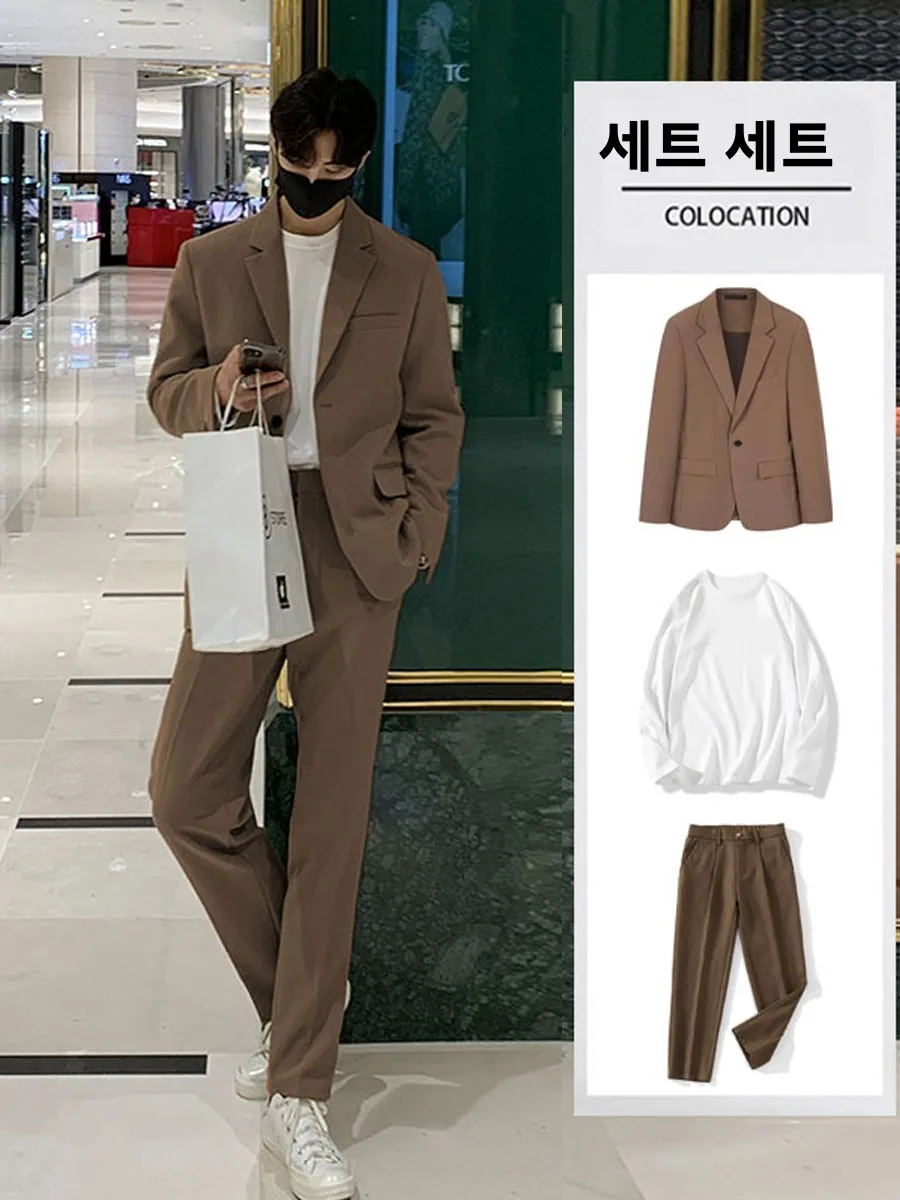 가을 신상 캐주얼 브리티시 스타일 남성 정장 세트 웨딩 신랑 3피스 세트 슬림핏 비즈니스 캐주얼 루즈핏 폴리에스터 원단