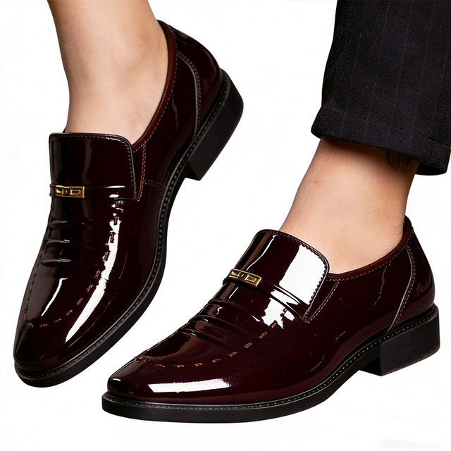 [옷자락]남성 정장 유광 가죽 블랙 브라운 낮은굽 로퍼