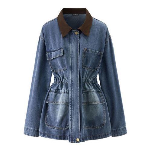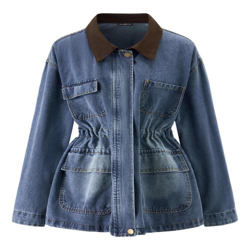 [나인식스뉴욕]데님 카라 배색 허리 스트링 하프 자켓 (NQ1JK004L0)