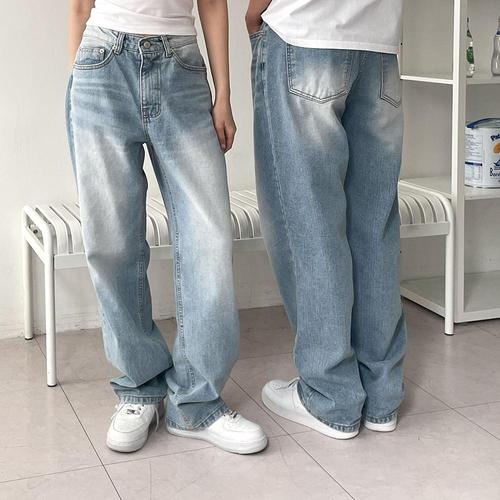 남여공용 베이직 워싱 와이드 쿨 데님 팬츠 UJ-JEA-8063