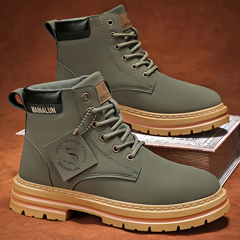 TEMU 남성용 하이킹 부츠 1켤레, 솔리드 컬러 숏부츠, 스트릿 아웃도어 부츠, 두꺼운 밑창 내구성 강한 노란색 부츠, 사계절 착용 가능, /아웃도어/캠핑/하이킹 데일리 웨어, 카키/그레이/블랙/그린