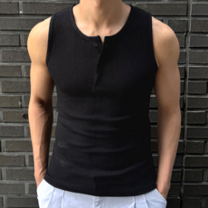 시온 남성용 머슬핏 헨리넥 골지 나시