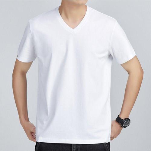 사계절용 남녀공용 시원한 V넥 무지 면 반팔 티셔츠 WFLMEAG