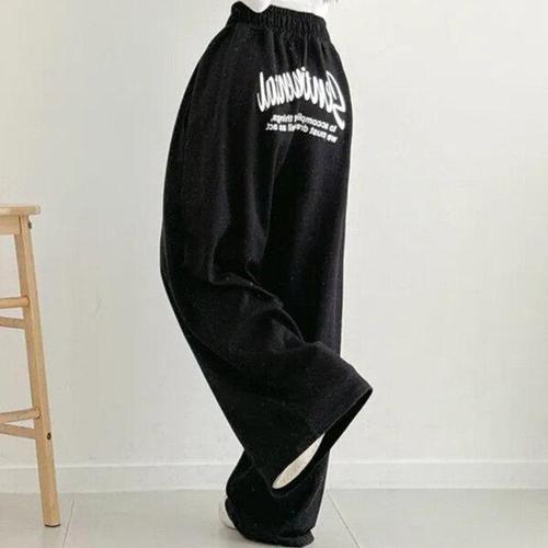 [굿쇼핑몰_의류]기모 밴딩 레터링 프린팅 루즈핏 와이드 롱 팬츠