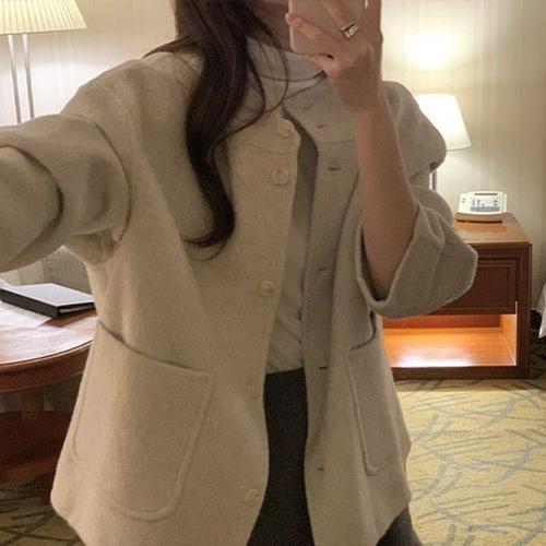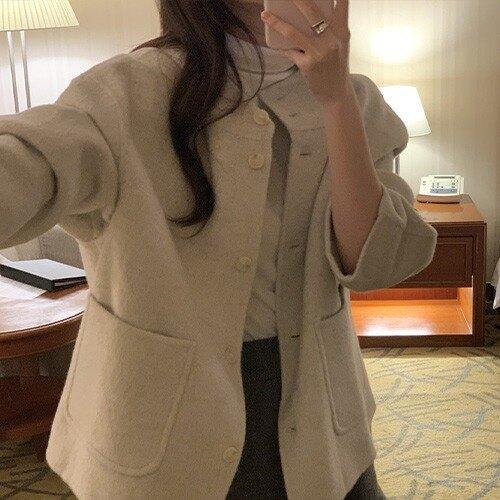 [제이0]후드 버튼 핸드메이드 하프 코트 반코트