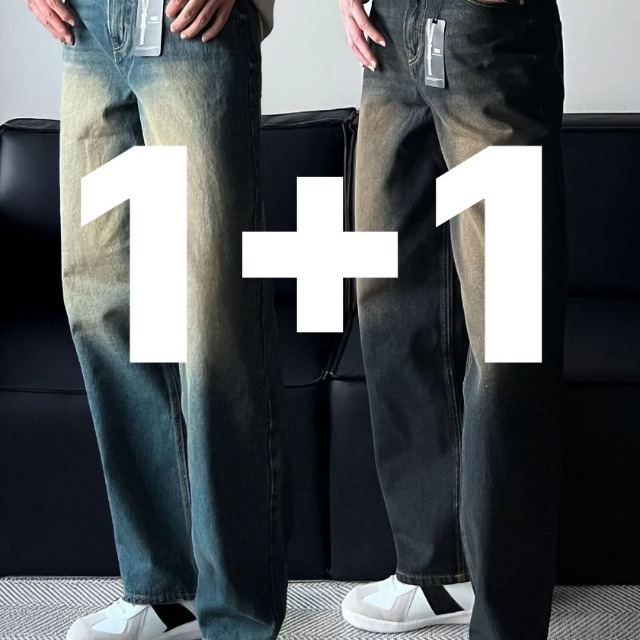 S~5XL 빅사이즈 청청패션 워싱 세미와이드청바지 밴딩청바지