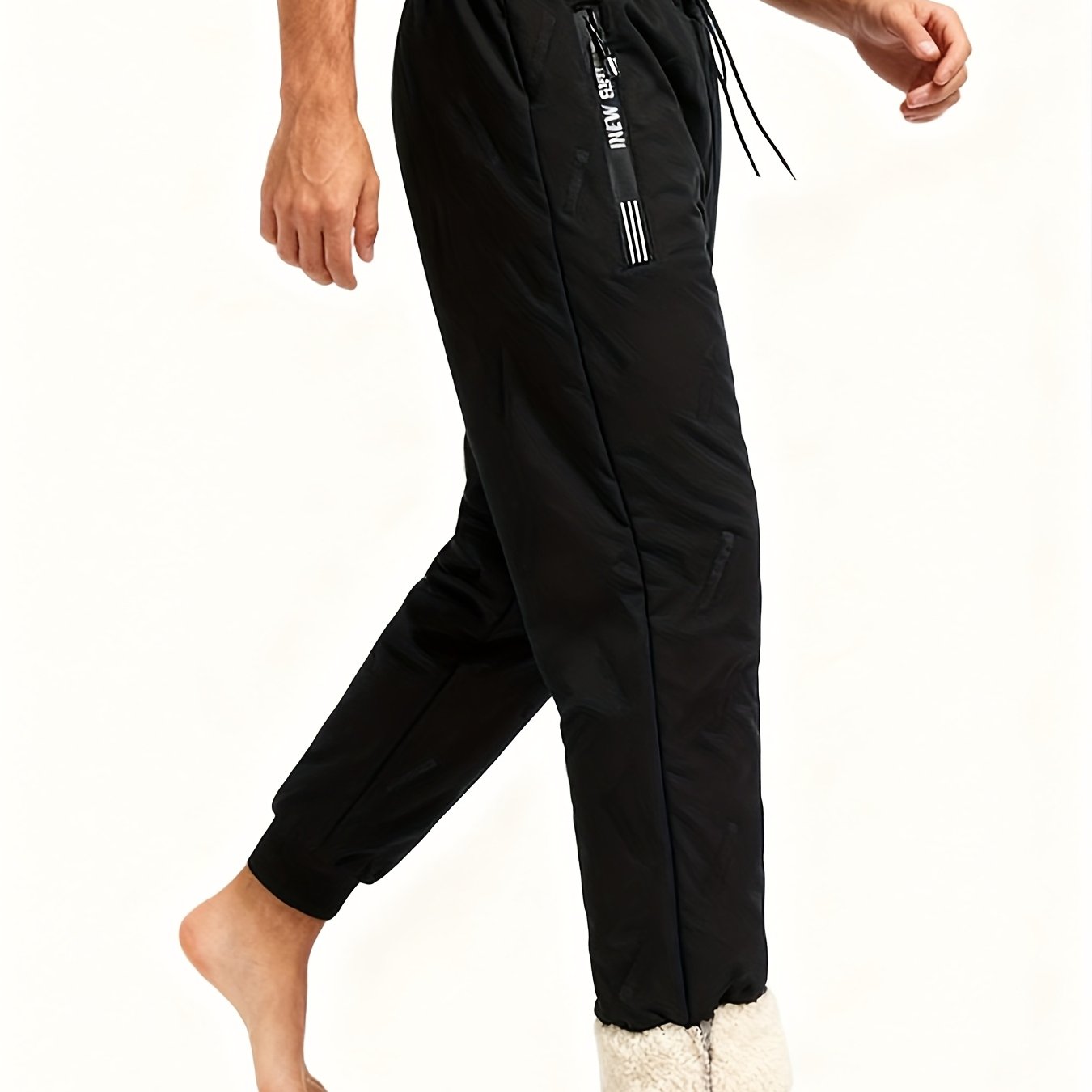 TEMU 남성용 두꺼운 겨울용 지퍼 포켓 러닝 팬츠 - 조절 가능한 허리 & 종아리가 있는 헤비듀티 체육관 바지, 하이킹, 야외, 추운 날씨용 - 논스트레치 루즈핏 캐주얼 (블랙) - 손세탁 가능