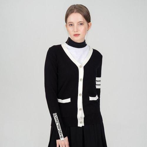 울 베로니 배색 단가라 니트 가디건 (2color)