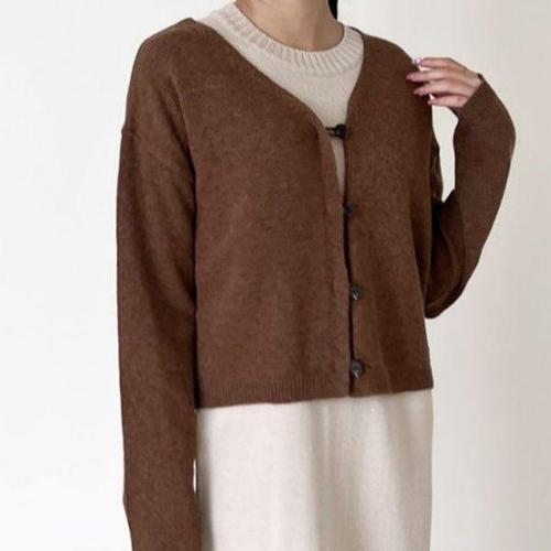 [에이치플러스몰]브이넥 고리 니트가디건 DJJ5064