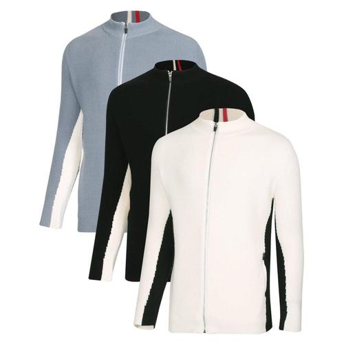 [까스텔바작]그래픽 남성골프웨어 봄 남성 캐릭터 컬러배색 디자인 니트 남자 골프 니트집업 점퍼_CA