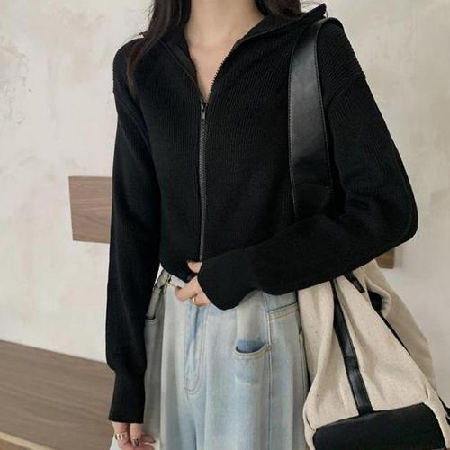 [모노무드]LMO 넉넉핏스타일 비침소재 크롭핏 니트집업